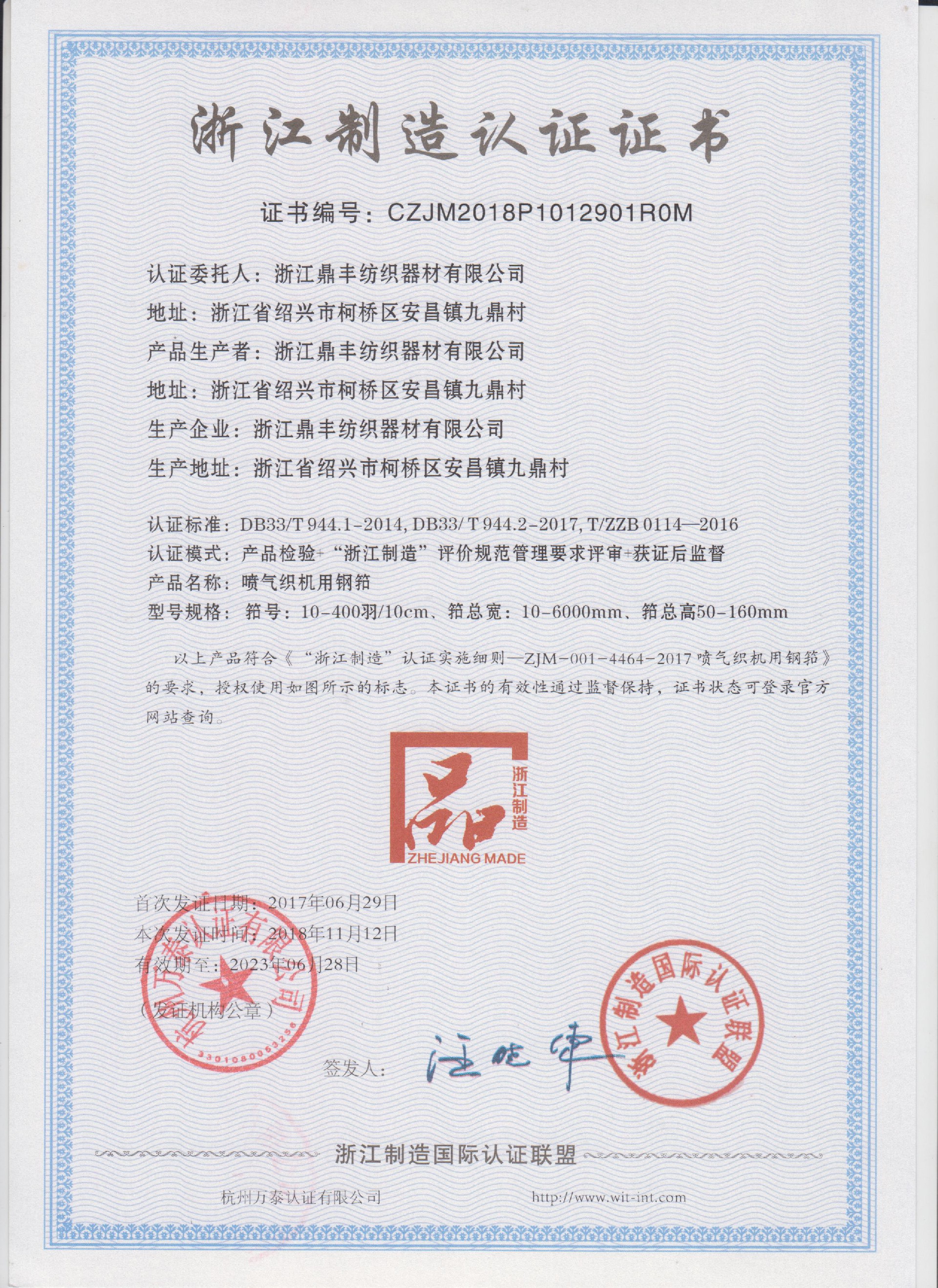 公司現(xiàn)有固定資產(chǎn)6000余萬元,員工300余人,現(xiàn)具有年產(chǎn)噴氣異型筘12萬米,劍桿筘32萬米,噴水筘5萬米,綜框20萬片,鋼片綜2億片,停經(jīng)片1.5億片, 織軸1.2萬套的生產(chǎn)能力。公司“越泉”商標(biāo)被評為“中國馳名商標(biāo)”。公司通過ISO9001 :2015國際質(zhì)量體系認(rèn)證,ISO14001:2015國際環(huán)境管理體系認(rèn)證,ISO45001:2018國際職業(yè)健康安全管理體系認(rèn)證,噴氣織機用鋼筘和織機用鋁合金綜框獲得“浙江制造”品牌認(rèn)證,公司擁有自營進(jìn)出口權(quán),產(chǎn)品暢銷全國并遠(yuǎn)銷印度、巴基斯坦、土耳其、埃及、哥倫比亞、意大利等國家和地區(qū)。